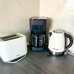 Az apartman egy teraszt kínál, illetve kávé/teafőzőt, ülősarkot és TV-t biztosító szobákat. 1 hálószobából, teakonyhából, illetve 1 fürdőszobából áll. A fürdőszobákban külön WC és zuhanyzó elérhetők.